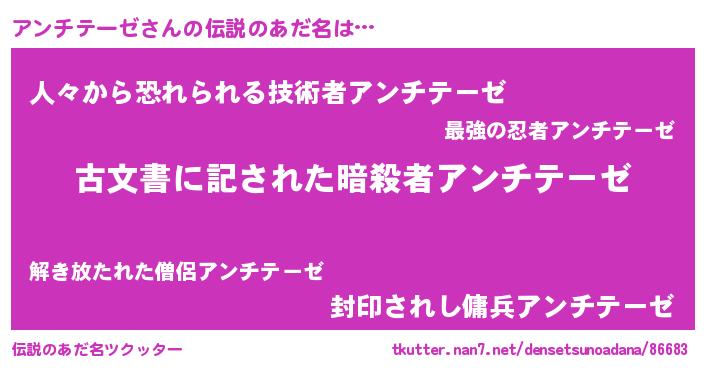 | 意味不明あだ名 | 『永久保存アンチテーゼ』 |