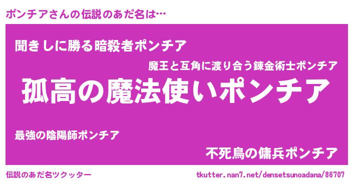 | 男性向けラノベタイトル風あだ名 | 『ダンジョンにポンチアを求めるのは間違っているだろうか』 |