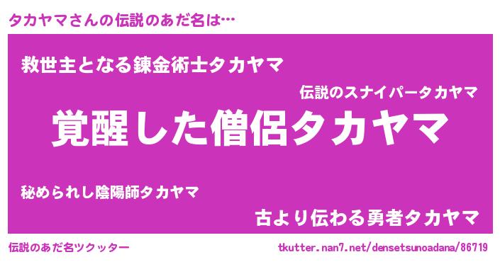 | 男性向けラノベタイトル風あだ名 | 『タカヤマの嫁は女の子じゃないと思った?』 |