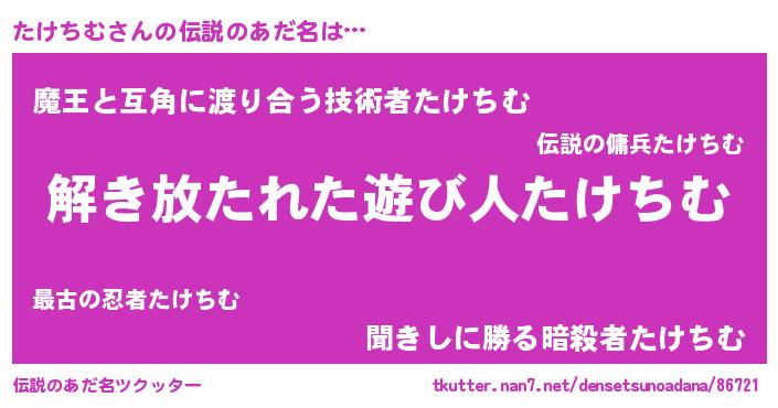 | ヘコむあだ名 | 『たけっちょ』『たけちむ(小並感)』 |