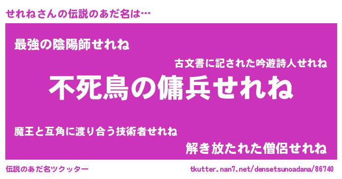 | ヘコむあだ名 | 『せれもー』『つくし』『せれ太郎』 |