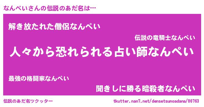 | ヒーロー風カッコイイあだ名 | 『正義の使者なんぺい』『黄金騎士ナン』 |