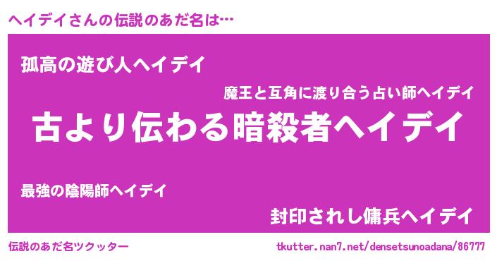 | 男性向けラノベタイトル風あだ名 | 『誰もが恐れるあのヘイデイが、ぼくの専属メイドになるようです。』 |