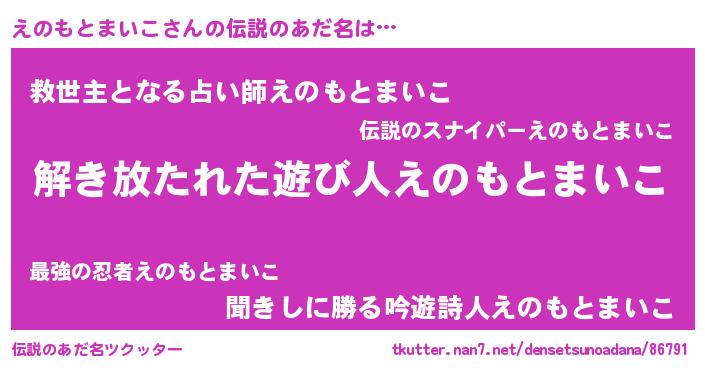 | 意味不明あだ名 | 『自称えのもとまいこ』 |