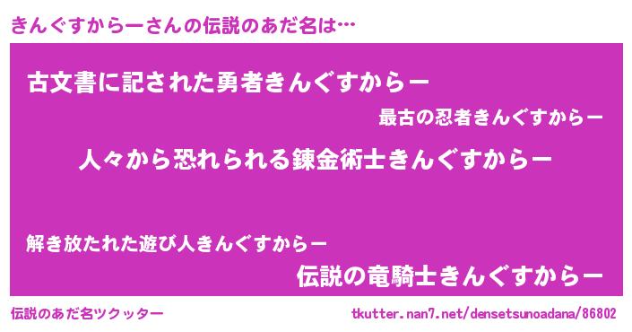 | ヒーロー風カッコイイあだ名 | 『正義の使者きんぐすからー』 |