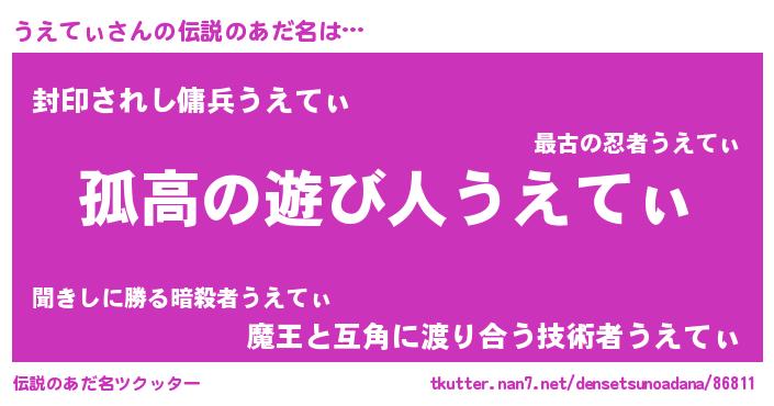| 意味不明あだ名 | 『住所不定無職うえてぃ(98歳)』 |