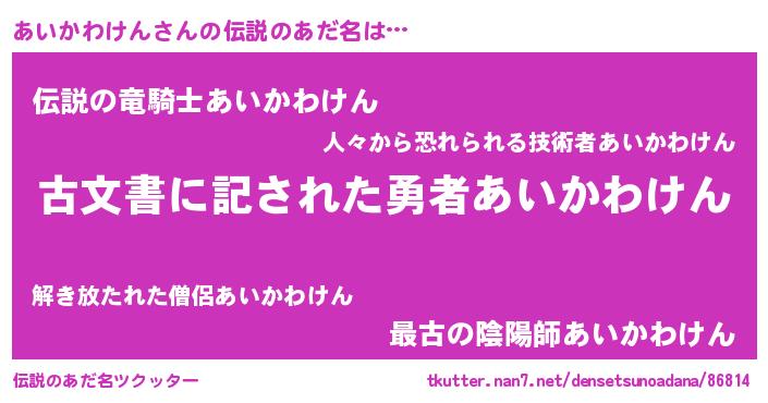 | 意味不明あだ名 | 『永久保存あいかわけん』 |