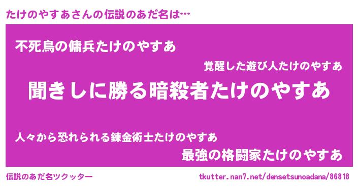 | 意味不明あだ名 | 『住所不定無職たけのやすあ(40歳)』 |