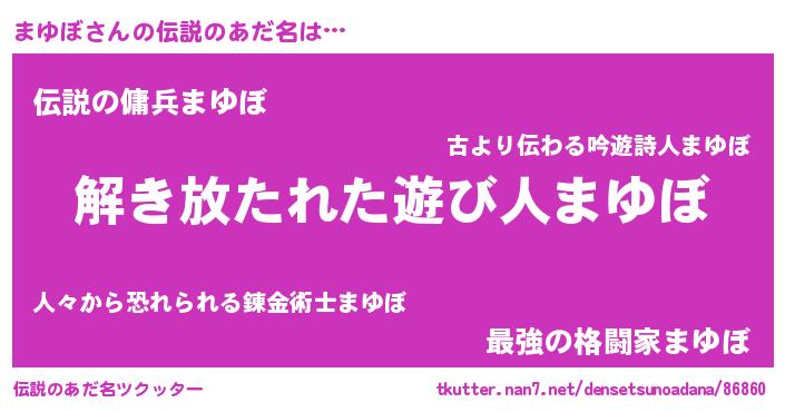 | ヒーロー風カッコイイあだ名 | 『魔戒騎士マユ』『スーパーマユボ』 |