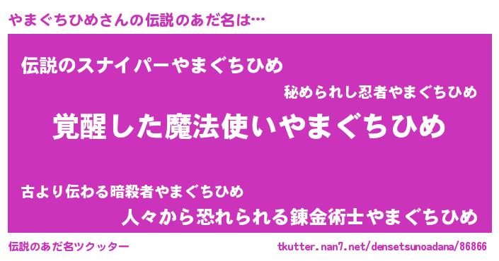 | 男性向けラノベタイトル風あだ名 | 『やまぐちひめの嫁は女の子じゃないと思った?』 |