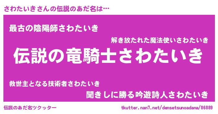 | 男性向けラノベタイトル風あだ名 | 『緋弾のサワタイキ』『さわたいきの憂鬱』 |