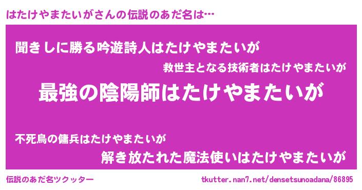 | 肩書あだ名 | 『はたけやまたいが国家主席』 |