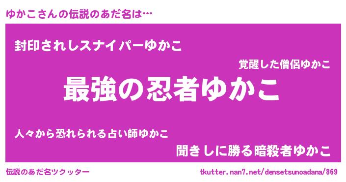 | ヒーロー風カッコイイあだ名 | 『ウルトラゆかこマン』『仮面ユカダー』 |