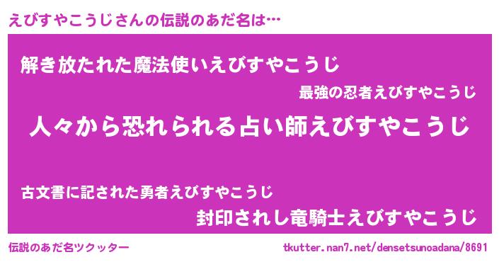 | ヒーロー風カッコイイあだ名 | 『正義の使者えびすやこうじ』 |