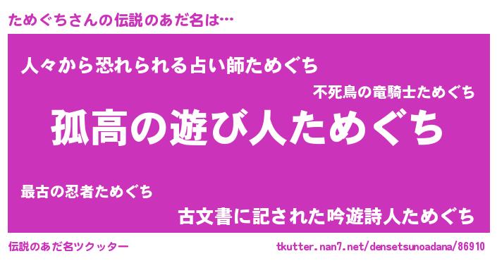 | 女子向けラノベタイトル風あだ名 | 『ためぐちが死なない童話 林檎のためぐちの診療簿』 |