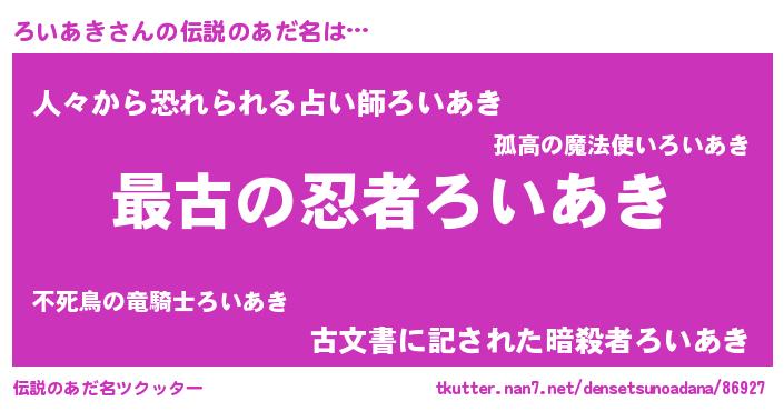 | ヒーロー風カッコイイあだ名 | 『ウルトラろいあきマン』『仮面ロイダー』 |