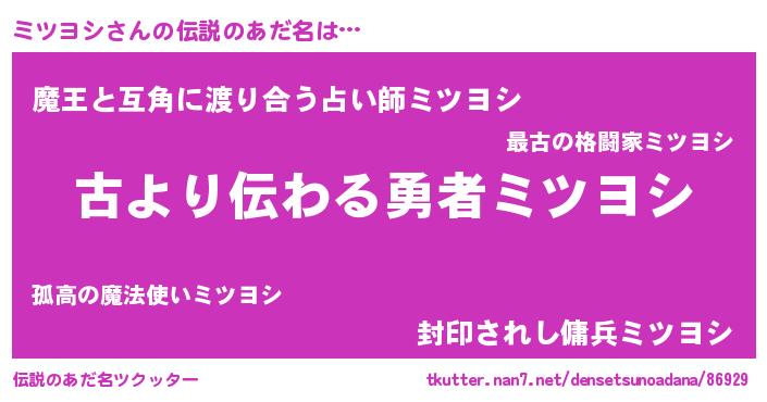 | ヘコむあだ名 | 『ミツヨシ(苦笑)』『ミツにゅー』 |