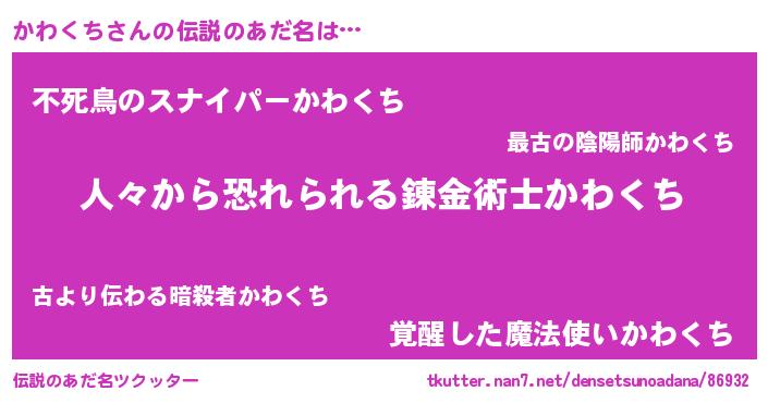 | ヒーロー風カッコイイあだ名 | 『正義の使者かわくち』『仮面カワダー』 |