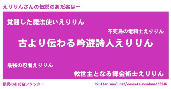 | 意味不明あだ名 | 『永久保存えりりん』『自称えりりん』 |