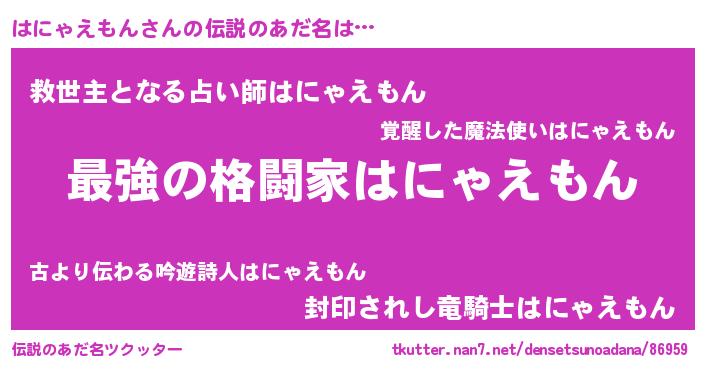 | ヒーロー風カッコイイあだ名 | 『ウルトラはにゃえもんマン』 |