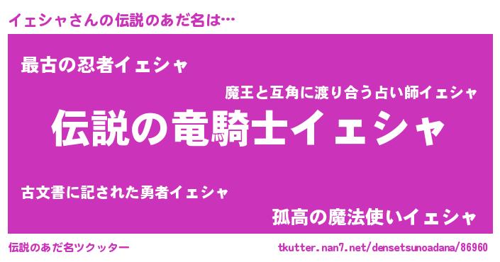 | ヒーロー風カッコイイあだ名 | 『スーパーイェシャ』『幻影騎士イェ』 |