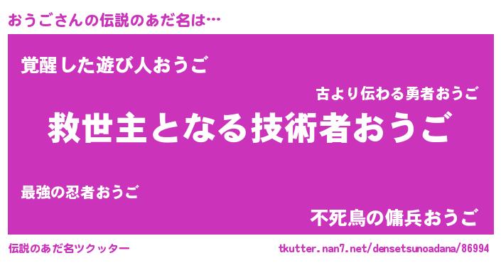 | 肩書あだ名 | 『おうご教授』『おうご総統』 |