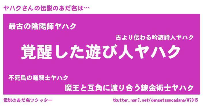| ヒーロー風カッコイイあだ名 | 『天弓騎士ヤハ』『ウルトラヤハクマン』 |