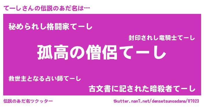 | ヒーロー風カッコイイあだ名 | 『暗黒騎士テー』『ウルトラてーしマン』 |