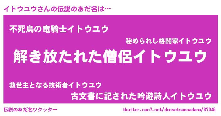 | ヒーロー風カッコイイあだ名 | 『幻影騎士イト』『スーパーイトウユウ』 |
