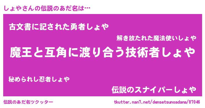 | ヒーロー風カッコイイあだ名 | 『愛の使者しょや』『究極戦士ショヤ』 |