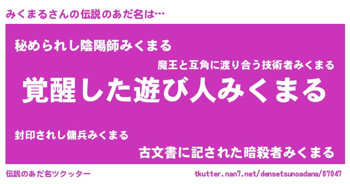 | 意味不明あだ名 | 『とにかく怪しいみくまる』 |