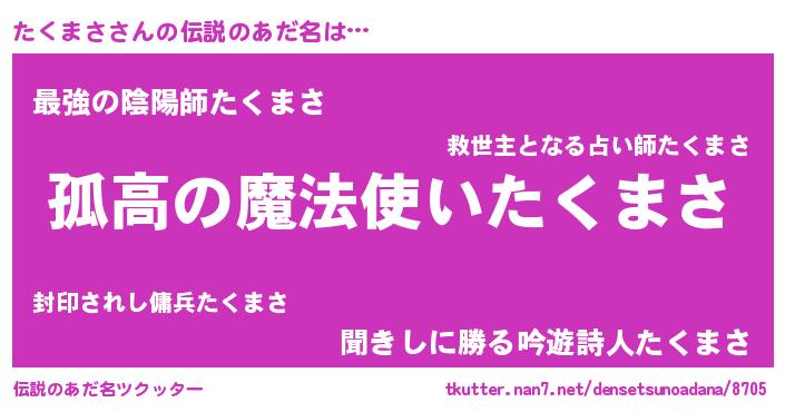 | 意味不明あだ名 | 『自称たくまさ』『たくまさフォーエバー』 |