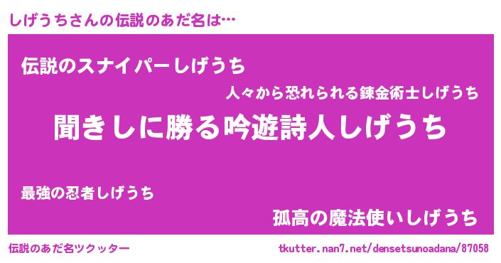 | ヘコむあだ名 | 『しげうち(小並感)』『しげっふぃ~』 |