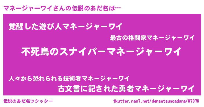 | 意味不明あだ名 | 『自称マネージャーワイ』 |