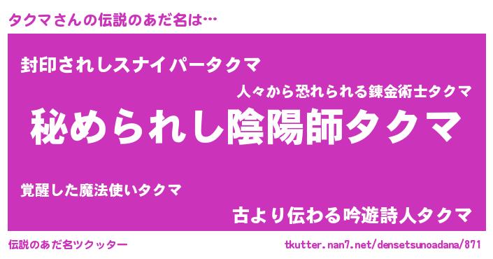 | ファンタジー風あだ名 | 『エターナルタクマー』『タクフェル』 |