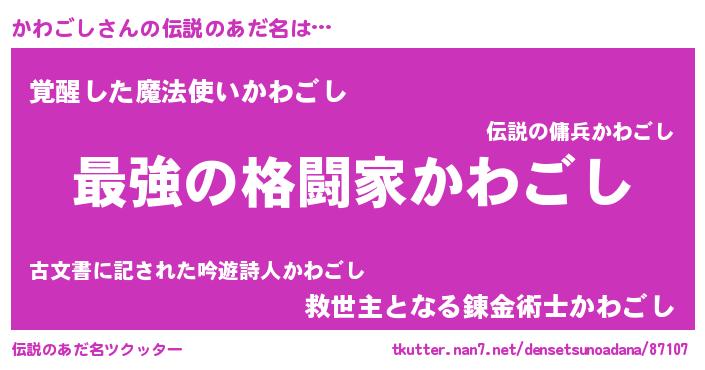 | ファンタジー風あだ名 | 『カークカワラー』『ヴァルカワーナ』 |