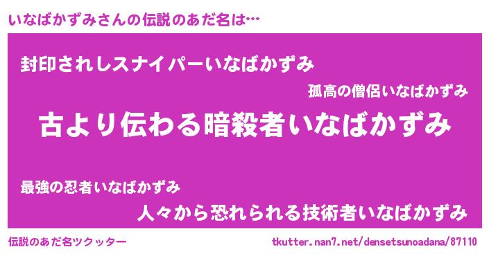 男性向けラノベタイトル風あだ名 | 『魔弾の王といなばかずみ』 |
