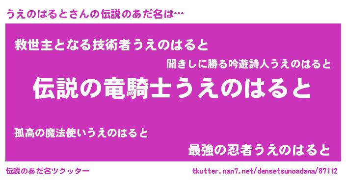 | 提督の名前『うえのはると提督』嫁『熊野』 |