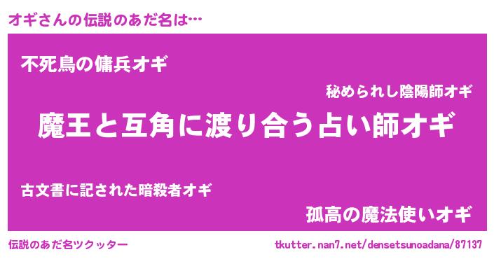 | 男性向けラノベタイトル風あだ名 | 『ノーゲーム・ノーオギ』『緋弾のオギ』 |
