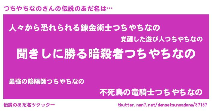 | ヒーロー風カッコイイあだ名 | 『ネオツチヤチナノ』『天弓騎士ツチ』 |