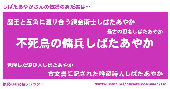 | ヒーロー風カッコイイあだ名 | 『仮面シバダー』『スーパーシバタアヤカ』 |