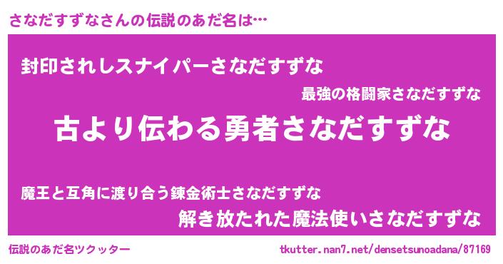 | 意味不明あだ名 | 『永久保存さなだすずな』 |