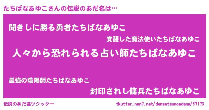 | ヘコむあだ名 | 『たちばなあゆこ(爆)』『たちっふぃ~』 |