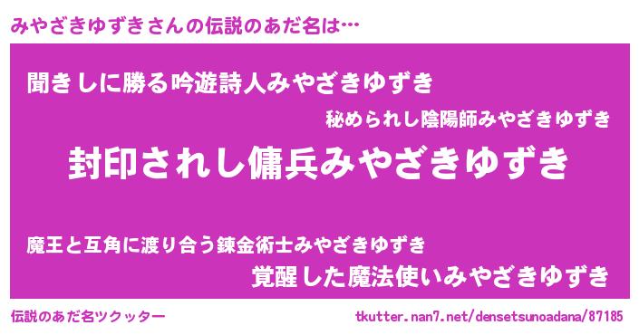 | 男性向けラノベタイトル風あだ名 | 『みやざきゆずきに滅ぼされるだけの簡単なお仕事です』 |