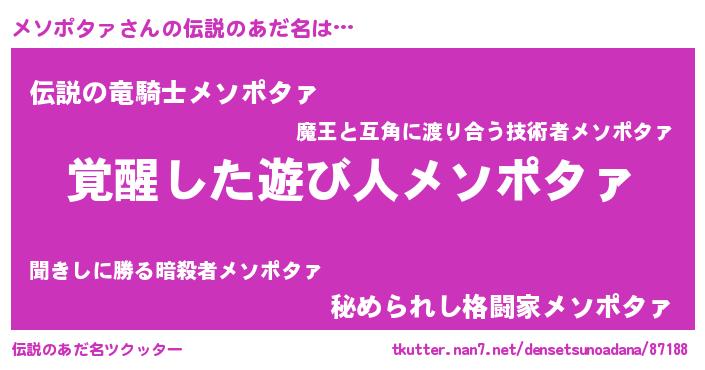 | 意味不明あだ名 | 『とにかく怪しいメソポタァ』 |