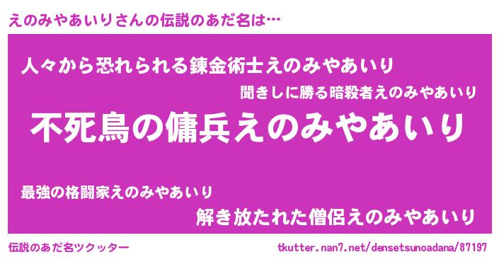 | 胡散臭い通販商品みたいなあだ名 | 『モテモテ間違いなし水晶球…その名も「えのみやあいり」』 |
