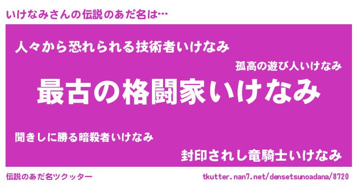 | 意味不明あだ名 | 『いけなみフォーエバー』 |