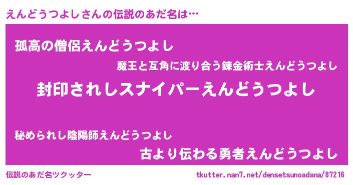 | 胡散臭い通販商品みたいなあだ名 | 『億万長者になれる霊験あらたかなお札…その名も「えんどうつよし」』 |