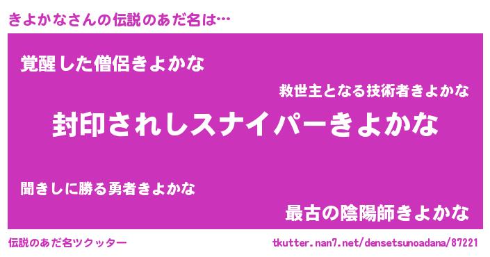 | 胡散臭い通販商品みたいなあだ名 | 『億万長者になれる霊験あらたかなお札…その名も「きよかな」』 |