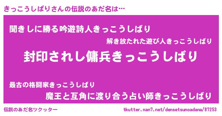 | ヒーロー風カッコイイあだ名 | 『スーパーキッコウシバリ』 |